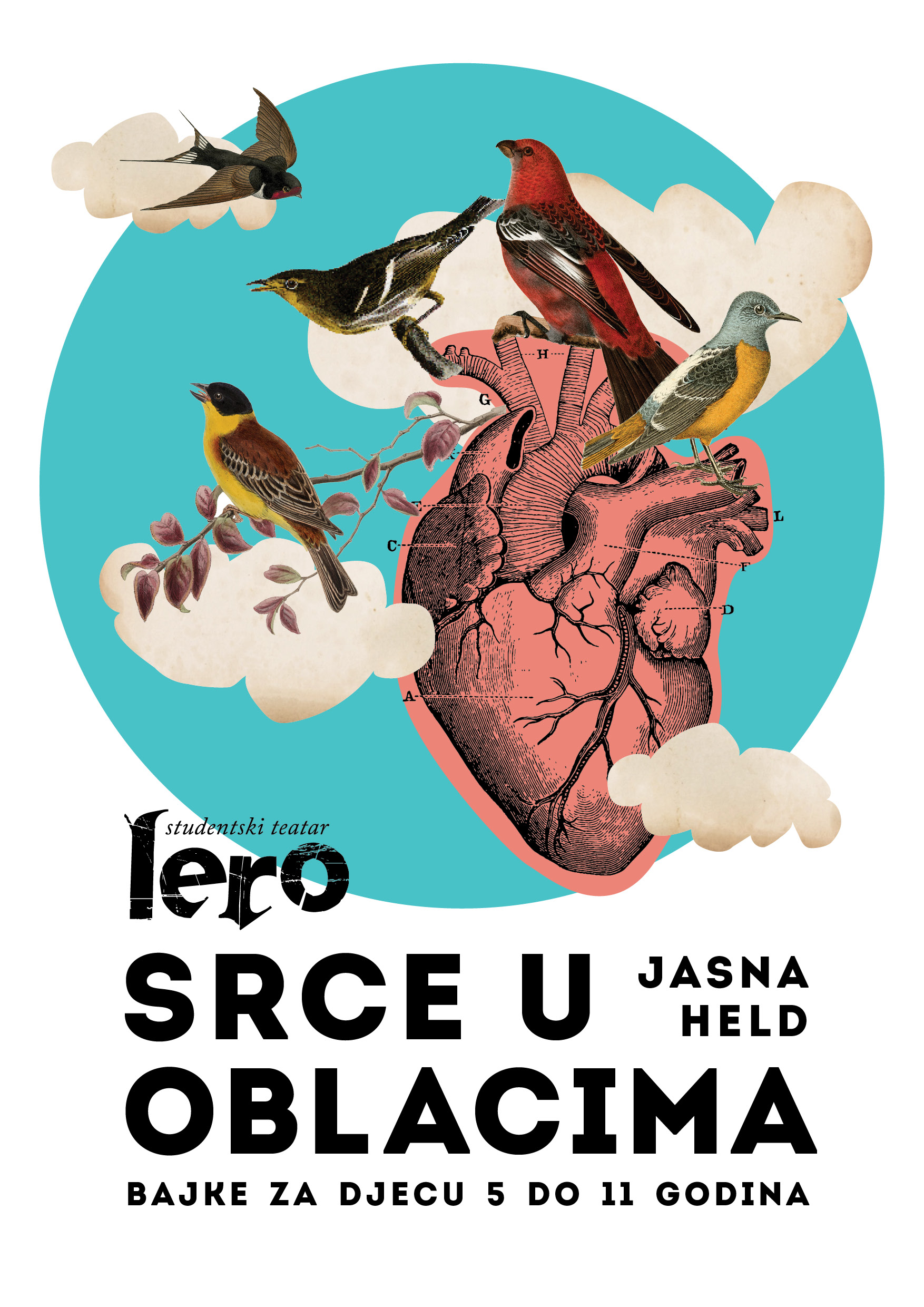 Studentski teatar Lero nastavlja sa svojim posebnim programom pripovjedanja bajki namjenjenog najmlađoj publici. Novi premijerni naslov je Srce u oblacima a pripovjedačica je dugogodišnja Lerova članica Jasna Held koja pripremila poseban izbor priča i bajki koje su ostale u usmenoj predaji ili su, jednim svojim dijelom, zapisane u knjigama bajki i slikovnicama.  Srce u oblacima nova je Lerova izvedba u nastavku višegodišnjeg posebnog programa namjenjenog djeci a premijerna i reprizna izvedba su 7. travnja u 10.30 i 8. travnja 2022. u 9.00 sati na Lerovoj sceni u Lazaretima. U programski ciklus za najmlađe Jasne Held  u produkciji Studentskog teatra Lero koji traje godinama  do sada su izvedeni naslovi: Jasna priča bajke (2005.), Oholica i druge bajke (2009.), Bus ruzmarina (2015.), Tri zlatne jabuke (2015.), Čupoglava (2016.), Mlin na dnu mora (2017.), Libro sv. Vlaha (2017., 2018., 2019., 2020., 2021., 2022.), Kominača (2018.), Orlando sanja (2019.),Bajke (2019.), Bajke majke (2020.) i Sretna princeza (2021.) i, najposlije, ovog travnja Srce u oblacima..